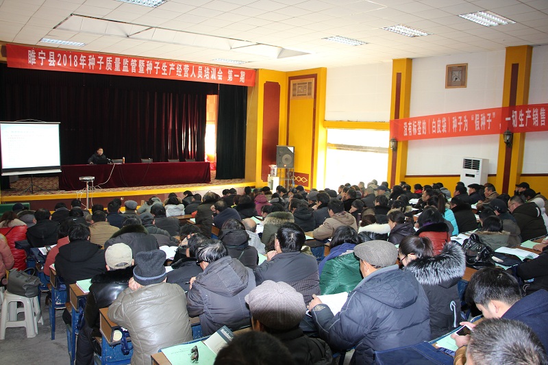 2018年2月5日,睢寧縣利用冬閑舉辦全縣種子生產(chǎn)經(jīng)營(yíng)人員培訓(xùn)會(huì)。睢寧縣種子管理站惠鵬站長(zhǎng)對(duì)2017年種子市場(chǎng)存在問題及取得成效進(jìn)行回顧總結(jié),通報(bào)了2017年檢打聯(lián)動(dòng)、嚴(yán)厲打擊侵權(quán)套牌、假冒偽劣種子的違法行為取得的成效。對(duì)2018年種子監(jiān)管重點(diǎn)進(jìn)行了布置:一是繼續(xù)加強(qiáng)培訓(xùn),提高種子從業(yè)人員法律觀念,強(qiáng)化種子生產(chǎn)經(jīng)營(yíng)人員依法生產(chǎn)經(jīng)營(yíng)意識(shí);二是進(jìn)一步加強(qiáng)農(nóng)作物種子生產(chǎn)經(jīng)營(yíng)備案管理,對(duì)經(jīng)營(yíng)不分裝種子的門店進(jìn)行再備案培訓(xùn),要求限期備案;三是針對(duì)農(nóng)作物品種應(yīng)用存在的問題,進(jìn)行指導(dǎo);四是要求堅(jiān)決杜絕生產(chǎn)銷售“白皮袋子種子”等違法行為;五是按照放管服工作要求,創(chuàng)新為農(nóng)服務(wù)方式,完善“睢寧縣種子生產(chǎn)經(jīng)營(yíng)管理群”、“睢寧縣種植大戶群”,定期發(fā)布種子管理及選種用種信息,交流生產(chǎn)經(jīng)營(yíng)中存在問題,指導(dǎo)選種用種和網(wǎng)上備案,接受種子違法舉報(bào)投訴等。