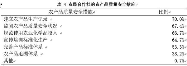 在農(nóng)產(chǎn)品質(zhì)量安全方面,農(nóng)民合作社大多建立了相關(guān)的質(zhì)量安全控制措施。70.0%的合作社建立了農(nóng)產(chǎn)品生產(chǎn)記錄,67.4%的合作社有能力監(jiān)測(cè)農(nóng)產(chǎn)品質(zhì)量安全狀況,66.7%的合作社能夠規(guī)范使用農(nóng)業(yè)化學(xué)品投入。然而,能夠建立農(nóng)產(chǎn)品質(zhì)量安全追溯體系的合作社只有38.2%,這是未來(lái)需要提高的重要領(lǐng)域,也是政策支持可以考慮的方向。