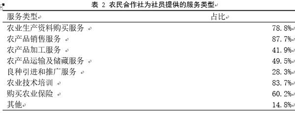 從農(nóng)民合作社為社員提供的服務(wù)上看,提供農(nóng)產(chǎn)品銷(xiāo)售服務(wù)的合作社最多,比重為87.7%,另有83.7%的合作社為社團(tuán)提供農(nóng)業(yè)技術(shù)培訓(xùn)服務(wù),還有78.8%的合作社為社員提供農(nóng)業(yè)生產(chǎn)資料購(gòu)買(mǎi)服務(wù)。從整體上看,合作社在良種引進(jìn)和推廣服務(wù)方面稍顯不足(占比僅為28.3%)。另外,在農(nóng)產(chǎn)品加工服務(wù)上面也有略有欠缺(占比41.9%)。