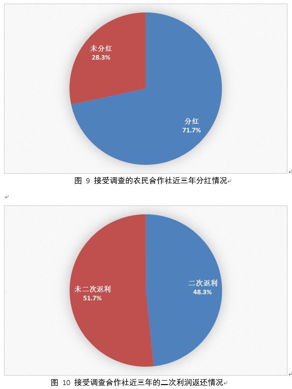 在帶農(nóng)增收方面,大部分農(nóng)民合作社都能夠通過(guò)分紅、二次利潤(rùn)返還等方式帶農(nóng)增收。參與調(diào)查的合作社中,有71.7%近三年進(jìn)行過(guò)分紅,有48.3%實(shí)施過(guò)對(duì)社員農(nóng)戶(hù)的二次利潤(rùn)返還。