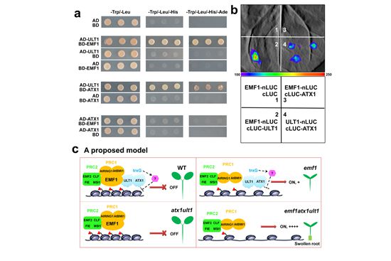 植物生長過程中各個發(fā)育階段的轉換和特定基因的表達對于植物生長非常重要,甚至會影響到植物尤其是農作物的產量,闡明植物發(fā)育時期的分子調控機理對于生物學基礎理論和農業(yè)生產都具有重要的意義。以往的研究認為擬南芥兩個表觀遺傳調控復合體Polycomb Group (PcG)和trithorax Group (trxG)通過拮抗作用來抑制或激活開花基因,從而控制營養(yǎng)生長到生殖生長期的轉換。但是這兩類蛋白在其他發(fā)育過程中的功能知之甚少。該研究通過分析PcG和trxG基因功能缺失的三突變體,首次發(fā)現(xiàn)trxG和PcG復合體的功能在苗期的種子基因調控中存在協(xié)同作用方式,而不是傳統(tǒng)認為的拮抗作用。進一步的研究證明了trxG和PcG蛋白可以通過調控染色體的動態(tài)結構,協(xié)同抑制苗期種子發(fā)育相關基因的異位表達,從而維持植物正常的營養(yǎng)生長。研究結果對于揭示PcG和trxG介導的基因表達和沉默途徑之間的相互作用機制以及植物發(fā)育時空表達調控的表觀遺傳調控新機理提供了重要依據(jù)。