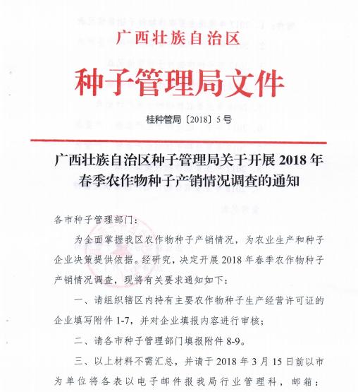 廣西2018年春季農(nóng)作物種子產(chǎn)銷情況調(diào)查通知