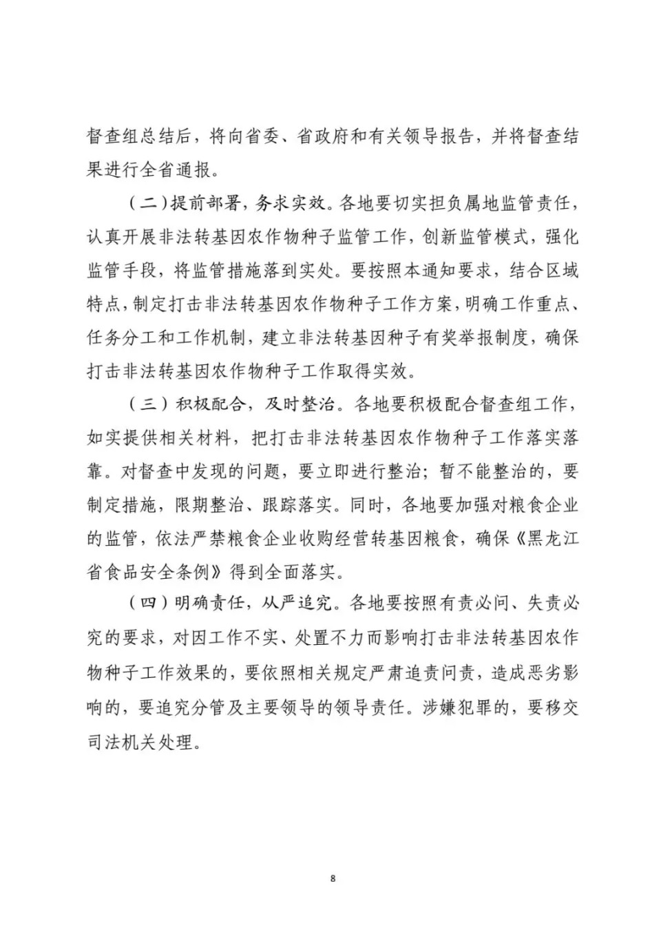 據(jù)了解,打擊非法轉(zhuǎn)基因的專項行動已經(jīng)開始,部分地區(qū)鄉(xiāng)鎮(zhèn),村級領(lǐng)導已經(jīng)聯(lián)合深入各村各戶檢查種子,發(fā)現(xiàn)轉(zhuǎn)基因一律上報,勸阻農(nóng)民退貨,有些轉(zhuǎn)基因泛濫的地區(qū)農(nóng)民已經(jīng)開始退貨,經(jīng)銷商也已經(jīng)開始迅速的,大面積回收轉(zhuǎn)基因種子,目前的工作還是理性的,仍以政策宣傳,耐心引導為主,3月15日開始,公安廳介入之后,將是十分嚴肅的,非常嚴厲的,不管怎么說,黑龍江反對轉(zhuǎn)基因的大網(wǎng)已經(jīng)拉開,誰將是網(wǎng)中之魚?(來源:百勝農(nóng)業(yè)科技 內(nèi)容有刪減)