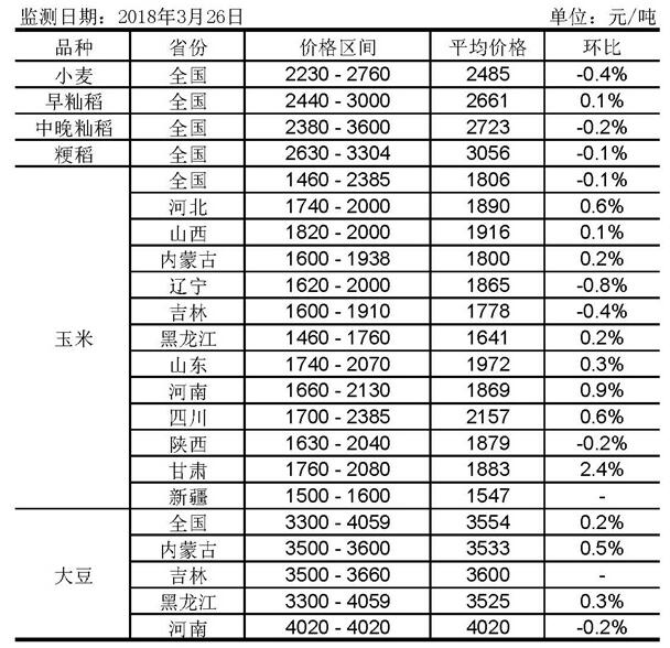 全國主要糧食品種收購價格周報(3月26日)