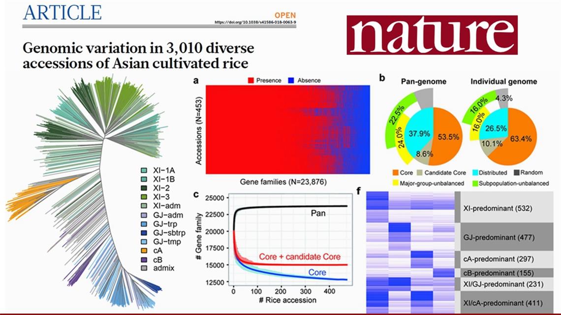 北京時間4月26日凌晨一點,國際頂級期刊《自然》雜志在線長文報導(dǎo)了“3010份亞洲栽培稻基因組研究”成果。該研究由中國農(nóng)業(yè)科學(xué)院作物科學(xué)研究所牽頭,聯(lián)合國際水稻研究所、上海交通大學(xué)、華大基因、深圳農(nóng)業(yè)基因組研究所、安徽農(nóng)業(yè)大學(xué)、美國亞利桑那大學(xué)等16家單位共同完成。