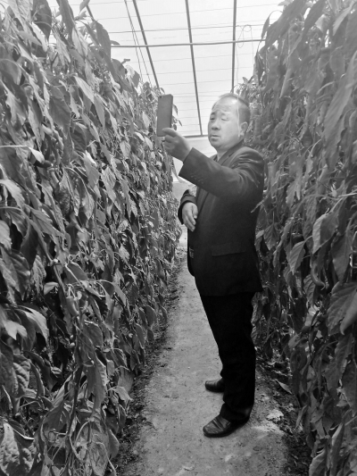 魯中蔬菜專業(yè)種植合作社理事長馬年輝通過手機(jī)視頻給老家的社員們展示品種。