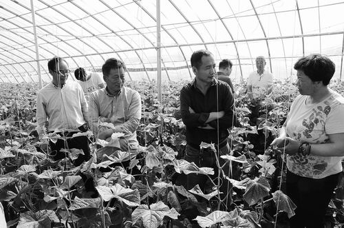 李君明和專家們?cè)?a href="http://www.rongk.cn/sell/293/" target="_blank">黃瓜大棚