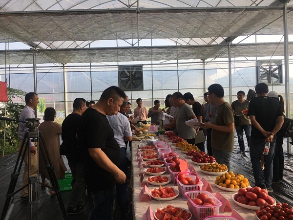 西瓜品種23個、甜瓜品種19個、番茄(包括櫻桃番茄)品種37個。在隨后的品鑒會上,各位專家根據(jù)新品種瓜菜的田間表現(xiàn)、食味、肉色、口感等要素進行了品鑒打分,一致認(rèn)為多數(shù)新品種都表現(xiàn)較好。