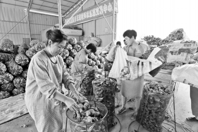 5月17日,安徽省宿州市埇橋區(qū)順河鄉(xiāng)興農(nóng)瓜菜專業(yè)合作社社員將“經(jīng)典一號”薄皮辣椒裝袋,以每公斤2.4元的價格出售給外地客商。“經(jīng)典一號”薄皮辣椒色澤翠綠、皮薄、微辣,在市場上十分俏銷。今年春順河鄉(xiāng)設(shè)施大棚種植“經(jīng)典一號”品種辣椒3000余畝,目前每天可以出售50余噸,除銷售本省外,還遠(yuǎn)銷到蘇、滬、鄂、豫、京等地,畝收入在萬元左右。 祝家剛李純樸攝