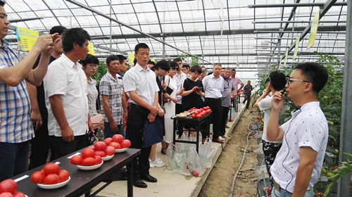 與參會(huì)人員觀摩了溫州市種子科技園瓜菜新品種展示中心,品嘗不同的番茄、黃瓜新品種,并參觀設(shè)施蔬菜工程技術(shù)展示中心。