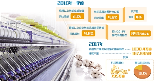 統(tǒng)計數(shù)據(jù)顯示,一季度規(guī)模以上紡織業(yè)增加值同比增長2.1%,紗產(chǎn)量增長4%,紡織品服裝累計出口額同比增長5.6%,限額以上企業(yè)紡織品服裝零售額同比增長9.8%,帶動新年度棉花消費量繼續(xù)增長。