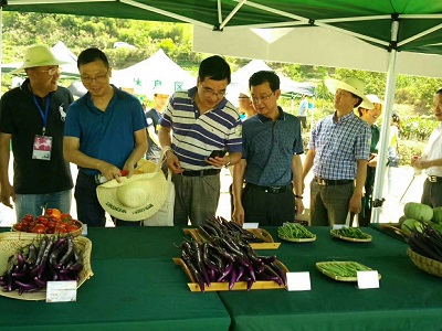 6月15日上午,清涼峰鎮(zhèn)綠源蔬菜基地迎來了杭州臨安清涼峰“有機(jī)蔬菜小鎮(zhèn)”開園儀式暨優(yōu)新品種展示現(xiàn)場會。來自杭州市農(nóng)業(yè)局、杭州市農(nóng)科院、杭州種業(yè)集團(tuán)以及臨安區(qū)人大、區(qū)鎮(zhèn)政府部門領(lǐng)導(dǎo),與蔬菜種植大戶、新聞媒體、社會各界人士共400余人參加現(xiàn)場會。