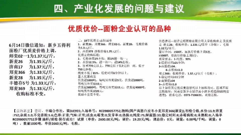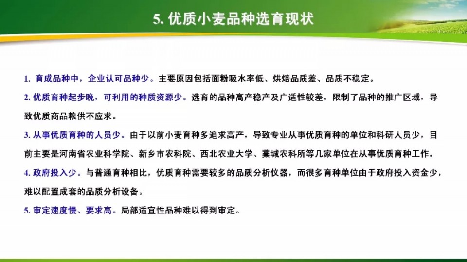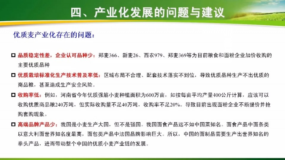 產(chǎn)業(yè)發(fā)展高峰論壇上,河南省農(nóng)科院小麥研究所吳政卿研究員做了題為《優(yōu)質(zhì)專用小麥育種現(xiàn)狀及產(chǎn)業(yè)化發(fā)展存在的問題和建議》的報告,報告共分為四個部分,內(nèi)容豐富、實用,見解獨到,希望對廣大種業(yè)同仁和農(nóng)民朋友有所幫助。具體請往下看: