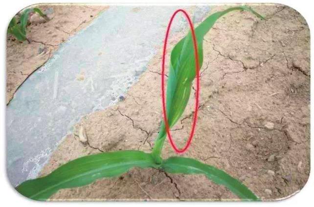 主要是2,4—D和乙草胺引起的,發(fā)生時(shí)間較早,一般在6月中旬就能見(jiàn)到。2,4—D藥害癥狀為葉片卷曲呈蔥心狀,莖脆易折,葉色濃綠,雄穗很難抽出,氣生根畸形,嚴(yán)重時(shí)葉片枯黃,無(wú)雌穗。乙草胺使用過(guò)量或不當(dāng)引起玉米葉鞘不能正常抱卷,心葉變形扭曲成鞭狀苗,莖節(jié)腫大。除草劑藥害引起的卷葉,用手摸鞭狀(蔥狀)葉片扭曲部分感到非常堅(jiān)硬,下部有軟硬相交部分。除草劑使用過(guò)量,施藥時(shí)間過(guò)晚,施藥后降水多,以及整地質(zhì)量不好、鎮(zhèn)壓不當(dāng)和播種過(guò)深、除草劑飄移等是引起藥害的主要原因。在同一濃度下,玉米品種間對(duì)除草劑的敏感程度也不一樣,在相同濃度下敏感品種和一些苗勢(shì)較弱的品種常常受到藥害。另外,2,4—D飄移可以引起鄰近未使用除草劑的敏感玉米品種不同程度的受害,這就是有的地塊本身沒(méi)有使用除草劑,仍表現(xiàn)出藥害癥狀的原因。