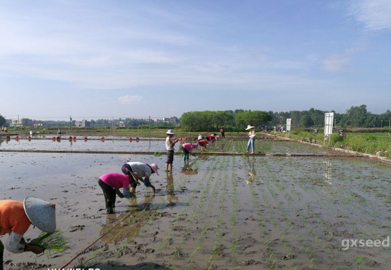 管理站繼續(xù)實施《玉林市種子質(zhì)量鑒定圃》項目。7月27日,玉林市種子管理站全體人員到陸川縣馬坡鎮(zhèn)硃砂村進行種子質(zhì)量種植鑒定圃秧苗移植工作,種植鑒定圃秧苗移植采用拉線定行、定株方式進行,共60個