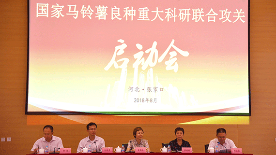 2018年8月3日,由河北省牽頭開(kāi)展的國(guó)家馬鈴薯良種重大科研聯(lián)合攻關(guān)項(xiàng)目啟動(dòng)會(huì)議在張家口市隆重召開(kāi),農(nóng)業(yè)農(nóng)村部種子管理局副局長(zhǎng)吳曉玲、河北省農(nóng)業(yè)廳副廳段玲玲、張家口市政府副市長(zhǎng)劉均勇出席會(huì)議并講話。