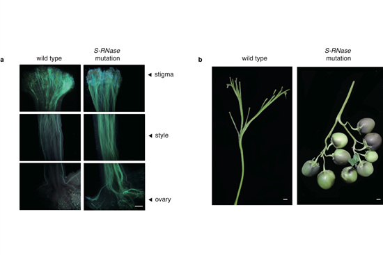 自然界中70%的馬鈴薯種質(zhì)為二倍體,其豐富的遺傳變異為“優(yōu)薯計(jì)劃”的實(shí)施提供了基礎(chǔ)。但是二倍體馬鈴薯普遍存在自交不親和的現(xiàn)象,限制了自交系的創(chuàng)制。要實(shí)現(xiàn)“優(yōu)薯計(jì)劃”,首先需要解決自交不親和的難題??朔越徊挥H和的傳統(tǒng)方式是利用來(lái)自野生馬鈴薯中的自交不親和抑制基因(S-locus inhibitor, 簡(jiǎn)稱Sli),但是Sli基因被導(dǎo)入栽培種后會(huì)產(chǎn)生長(zhǎng)匍匐莖、高龍葵素含量等一系列不良的農(nóng)藝性狀,增加了遺傳改良的難度。為了尋找一種更有效的克服自交不親和的方法,該團(tuán)隊(duì)創(chuàng)新性地利用基因組編輯技術(shù)解決這一難題。馬鈴薯的自交不親和是由核糖核酸酶基因(S-RNase)控制的,該基因在不同材料中的多態(tài)性非常高,很難通過(guò)同源克隆的方法克隆到S-RNase基因的全長(zhǎng)。研究人員通過(guò)對(duì)柱頭轉(zhuǎn)錄組進(jìn)行從頭拼接,獲得了S-RNase基因的全長(zhǎng)序列,并利用基因組編輯技術(shù)對(duì)此基因進(jìn)行了定點(diǎn)突變,獲得了自交親和的二倍體馬鈴薯,并通過(guò)自交獲得了不含有外源片段的馬鈴薯新材料。利用該方法獲得的自交親和馬鈴薯新種質(zhì)不含有任何野生基因組片段,可以直接應(yīng)用到育種過(guò)程中,為“優(yōu)薯計(jì)劃”的順利實(shí)施提供保障。