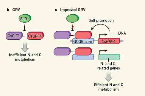傅向東等人的這項(xiàng)最新成果中發(fā)現(xiàn),GRF4能結(jié)合到參與氮吸收代謝的基因的啟動(dòng)子上,通過(guò)激活這些下游的基因來(lái)增加氮的吸收和代謝。同時(shí),GRF4需要另一個(gè)關(guān)鍵“盟友”GIF1的助推。
