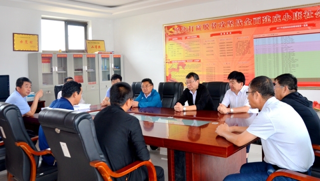 陜西省農(nóng)業(yè)廳副廳長(zhǎng)王韜與定邊縣紅柳溝鎮(zhèn)沙場(chǎng)村鎮(zhèn)村兩級(jí)干部座談設(shè)施農(nóng)業(yè)發(fā)展