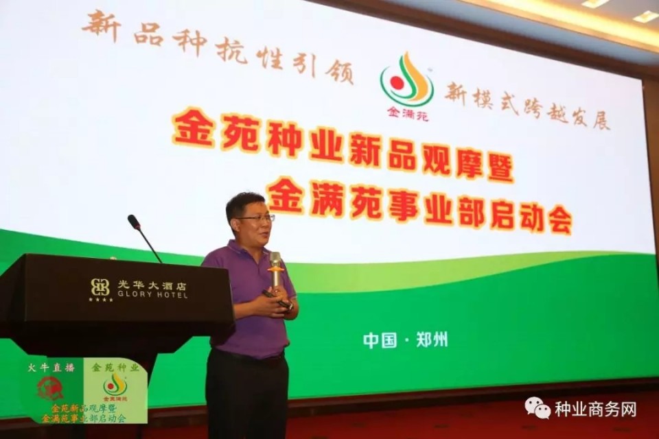 風雨兼程見證發(fā)展之路,金秋盛會再聚業(yè)界目光,好花盛開盡先摘!2018年9月2日,河南金苑種業(yè)股份有限公司在鄭州光華大酒店如期召開“金苑種業(yè)新品觀摩暨金滿苑事業(yè)部啟動會”。金苑種業(yè)董事長康廣華、總經(jīng)理焦學儉、常務副總陳海見、金滿苑事業(yè)部總監(jiān)馬文周以及來自山東、河南、河北、安徽、江蘇等各地種業(yè)界精英和企業(yè)代表相聚于此,共同見證金苑種業(yè)新品發(fā)布暨金滿苑事業(yè)部啟動盛典這一美好時刻。