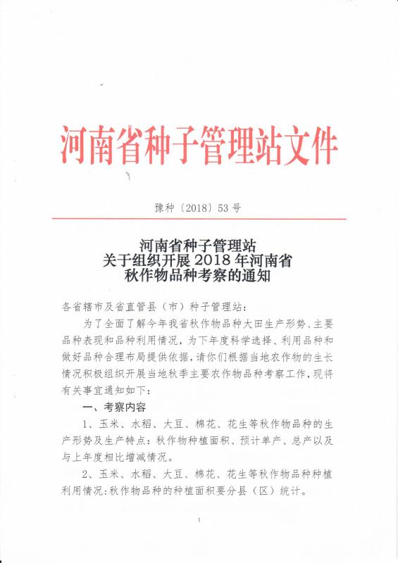河南關(guān)于組織開展2018秋作物品種考察的通知