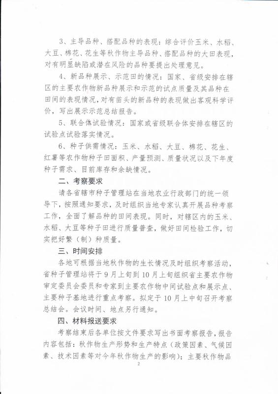 河南省種子管理站關(guān)于組織開展2018年河南省秋作物品種考察的通知