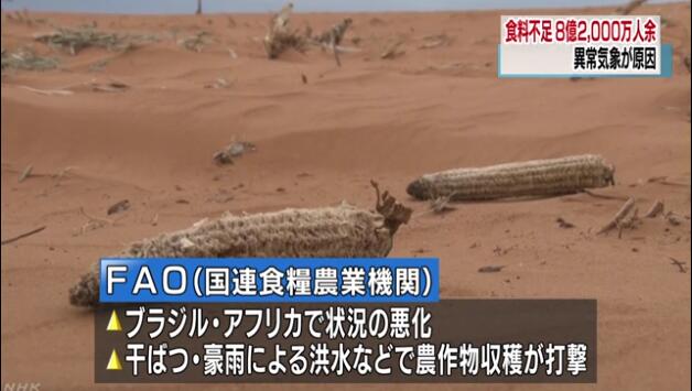 據(jù)報(bào)道,近3年來(lái),全球面臨糧食短缺問(wèn)題的人口在不斷增加,而2017年的數(shù)據(jù)與10年前持平。從地區(qū)分布看,位于南美的巴西和非洲的情況顯著惡化。FAO認(rèn)為,這是因?yàn)檫@些地區(qū)遭受的干旱、暴雨等異常天氣使得農(nóng)作物減產(chǎn)。