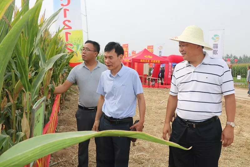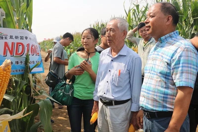 戴院士在豫玉種業(yè)領(lǐng)導(dǎo)陪同下觀摩玉米品種