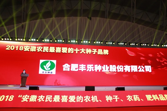 在首個“中國農民豐收節(jié)”即將到來之際,9月16日下午,2018“安徽農民最喜愛的農機、種子、農藥、肥料品牌暨農業(yè)社會化服務組織”評選活動發(fā)布會在濱湖國際會展中心隆重舉行。豐樂種業(yè)榮獲“安徽農民最喜愛的十大種子品牌”,豐樂農化榮獲“安徽農民最喜愛的十大農藥品牌”。豐樂種業(yè)董事長楊林代表50家獲獎企業(yè)宣讀質量誠信倡議書。