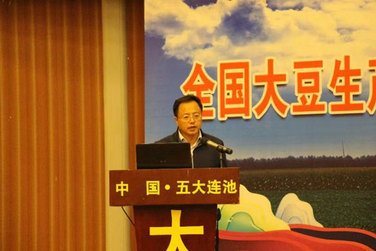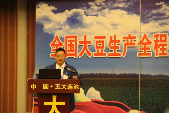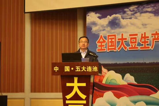 國(guó)家大豆產(chǎn)業(yè)技術(shù)體系首席科學(xué)家、中國(guó)農(nóng)業(yè)科學(xué)院作物科學(xué)研究所韓天富作專題報(bào)告