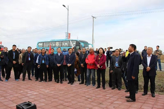 來(lái)自各個(gè)省(區(qū))的農(nóng)業(yè)專家、代表在大豆收獲現(xiàn)場(chǎng)觀摩、聽(tīng)講解