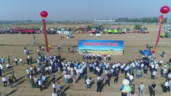 29日上午,艷陽高照,彩旗飄揚。蒙城縣小辛集鄉(xiāng)城西村的大田里,來自全國38家農(nóng)機生產(chǎn)企業(yè)的110余臺(套)先進農(nóng)機裝備依次擺開,涵蓋了主要農(nóng)作物耕、種、收、高效植保等生產(chǎn)全程機械化作業(yè)環(huán)節(jié)。