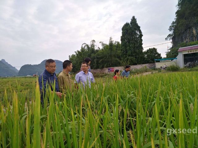 在平樂雜交水稻生產(chǎn)基地檢查