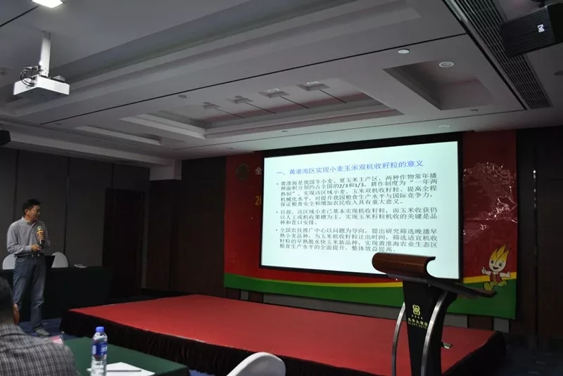 黃淮海小麥玉米雙籽粒機收模式試驗主持人、河南省種子管理站鄧士政博士就 2016年—2018年試驗結果,分別從生育期狀況、品種抗倒性、收獲時含水量、破碎率、產量結果做了詳細講解,對黃淮海小麥玉米雙機收籽粒模式試驗進行了總結。