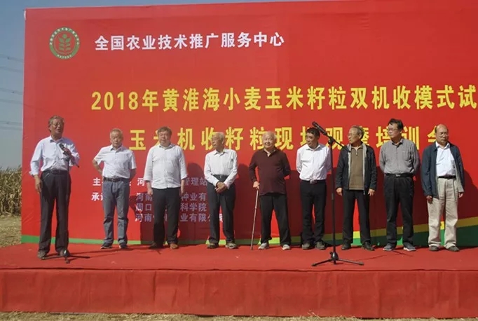 來自河北、陜西、山西、江蘇、安徽、山東、河南七省種子管理站代表,小麥玉米雙機收實驗承擔單位和品種參試單位代表,國家農作物品種審定委員會玉米專業(yè)委員會部分委員,國家黃淮海夏玉米品種試驗及小麥雙機收試驗主持人,以及著名育種家陳偉程教授、程相文研究員、鄭天存研究員、趙久然研究員等專家現(xiàn)場觀摩了小麥玉米籽粒雙機收模式試驗及玉米籽粒機收。