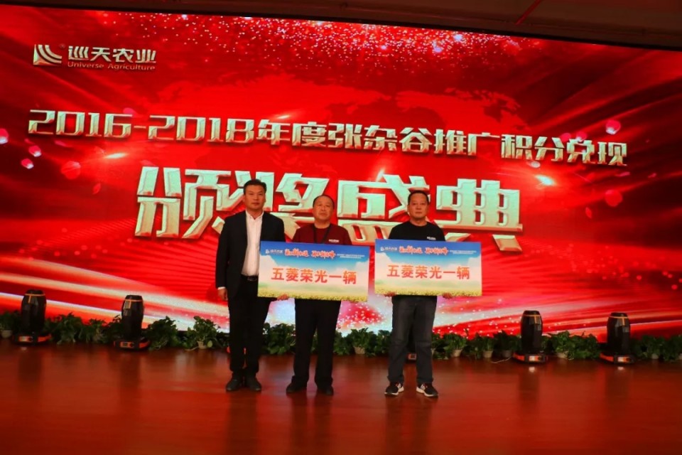對在參加張雜谷杯谷王爭霸賽活動中表現(xiàn)突出的李昌雁(山西省朔州市應(yīng)縣下社鎮(zhèn)李堡村人,2018年種植張雜5號5.7畝,畝產(chǎn)1408斤。)、代少輝(黑龍江省哈爾濱市雙城區(qū)水泉鄉(xiāng)大慶村人,2018年種植張雜13號36畝,畝產(chǎn)1323斤。)、李占山(河北省張家口市陽原縣浮圖講鄉(xiāng)官邸窯村人,2018年種植張雜谷13號5畝,畝產(chǎn)1273斤。)頒發(fā)了張雜谷杯谷王爭霸賽大獎。