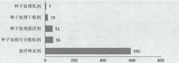 圖2 不同劑型種子處理產(chǎn)品登記數(shù)量(前5位)