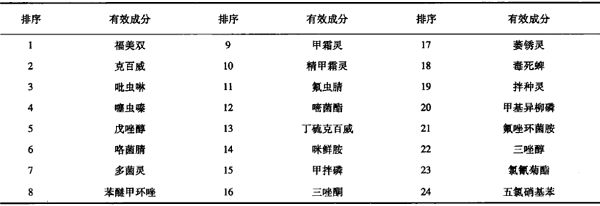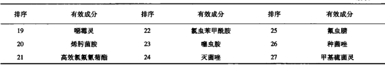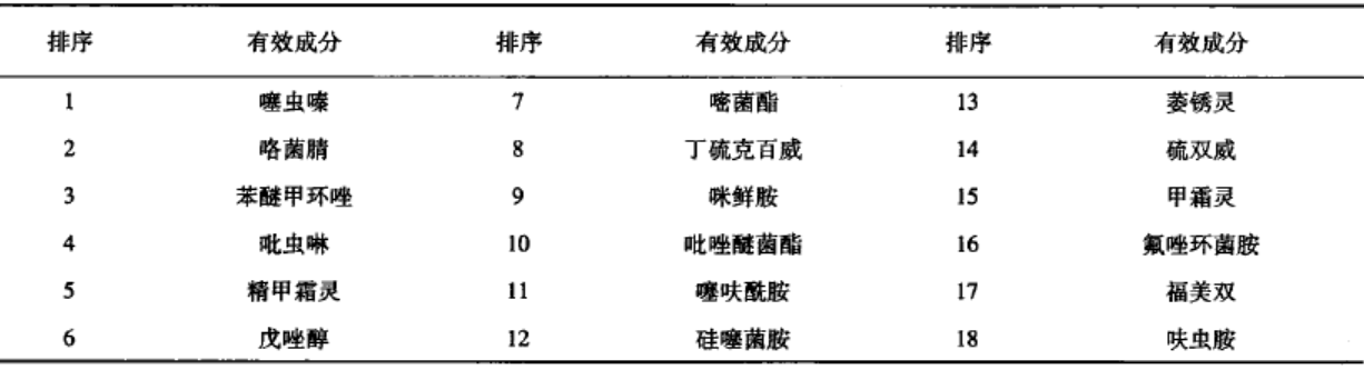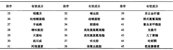表1 現(xiàn)有登記種子處理劑涉及的有效成分(按產(chǎn)品數(shù)量排序)