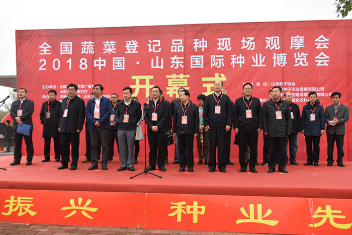 11月5日-6日,由全國農(nóng)業(yè)技術(shù)推廣服務(wù)中心和山東省農(nóng)業(yè)農(nóng)村廳主辦,濟南市農(nóng)業(yè)局、山東省種子管理總站、長清區(qū)人民政府承辦的全國蔬菜登記品種現(xiàn)場觀摩會和2018中國•山東國際種業(yè)博覽會在濟南農(nóng)高區(qū)隆重舉行。全國農(nóng)技中心主任劉天金,濟南市副市長王京文出席開幕式并致辭,山東省農(nóng)業(yè)農(nóng)村廳廳長李希信宣布大會開幕。