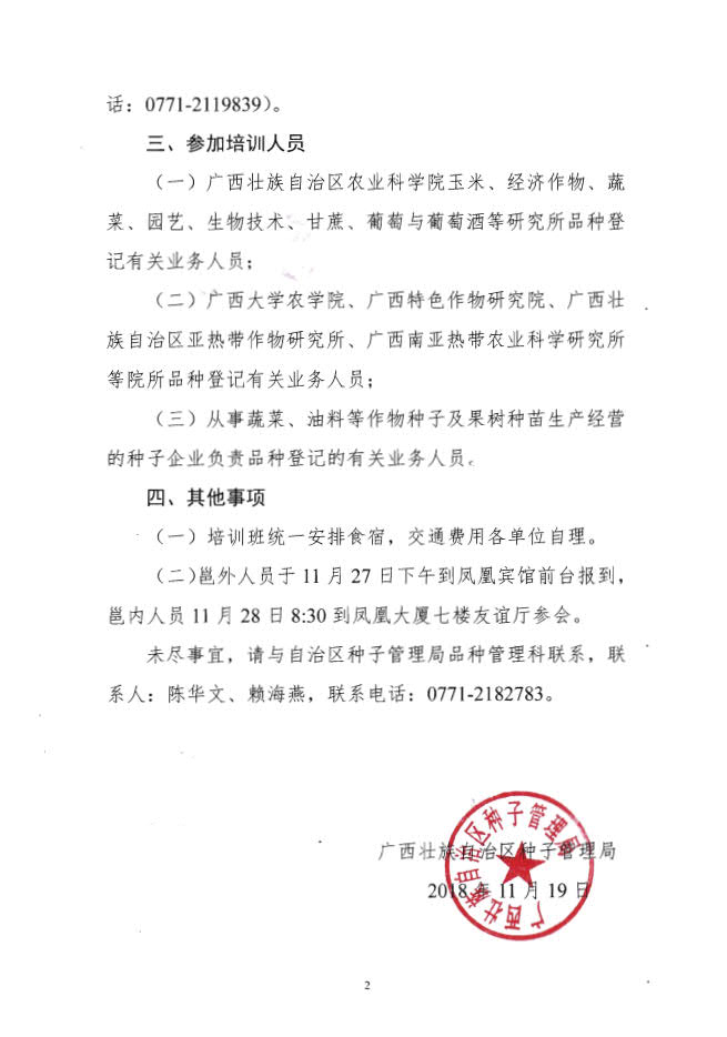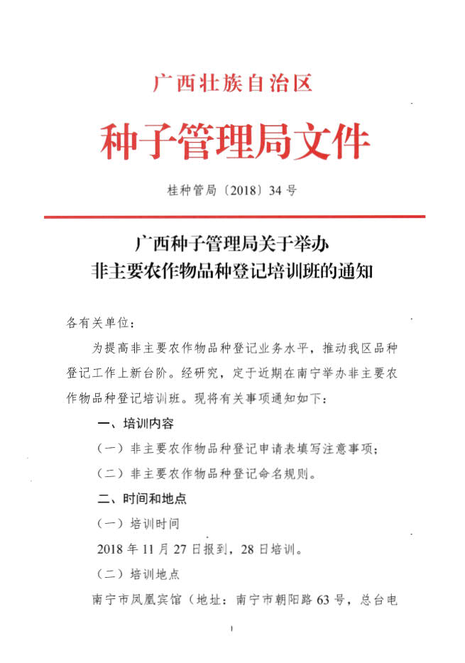 廣西召開非主要農(nóng)作物品種登記培訓(xùn)班的通知
