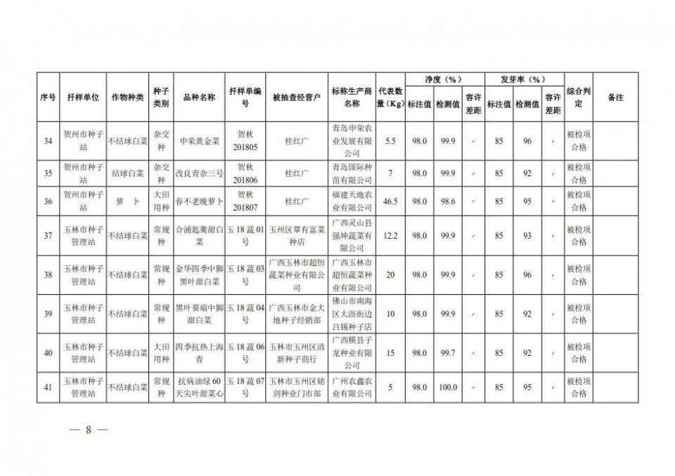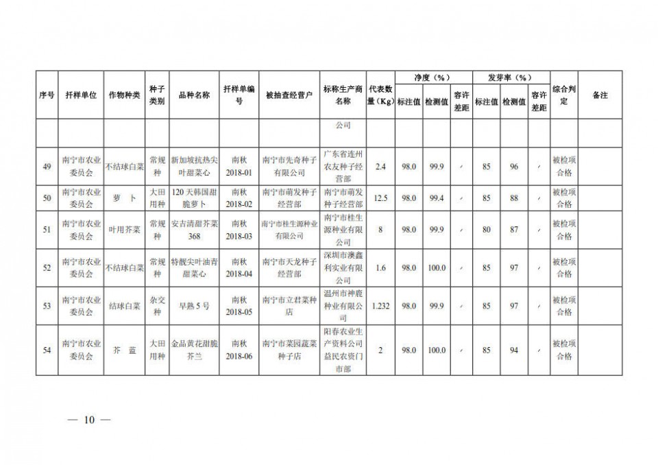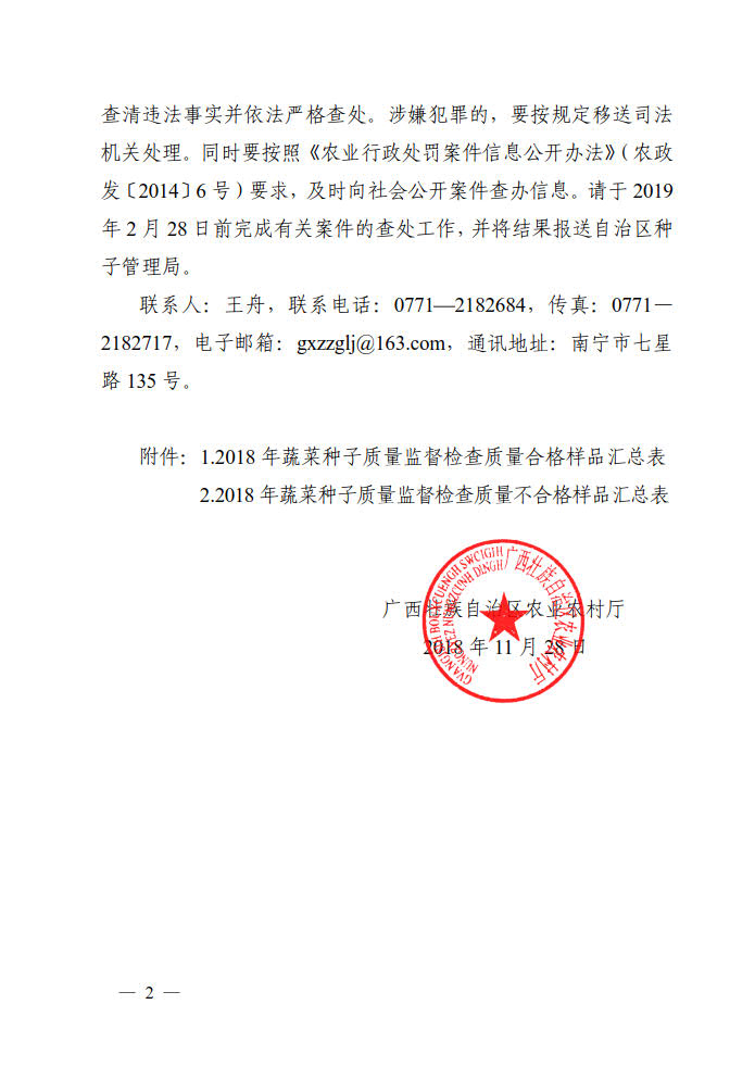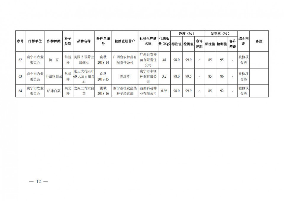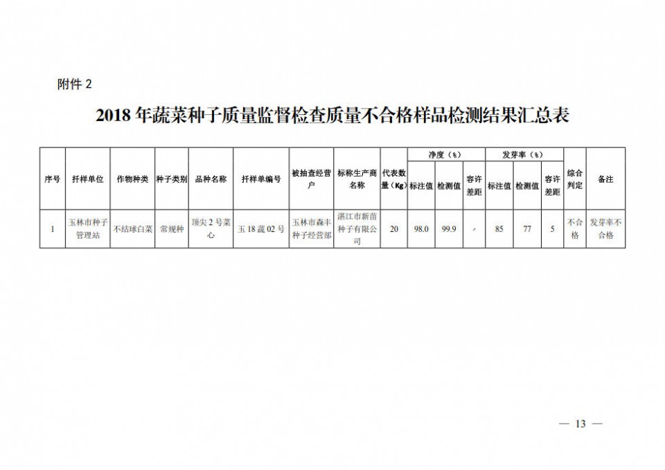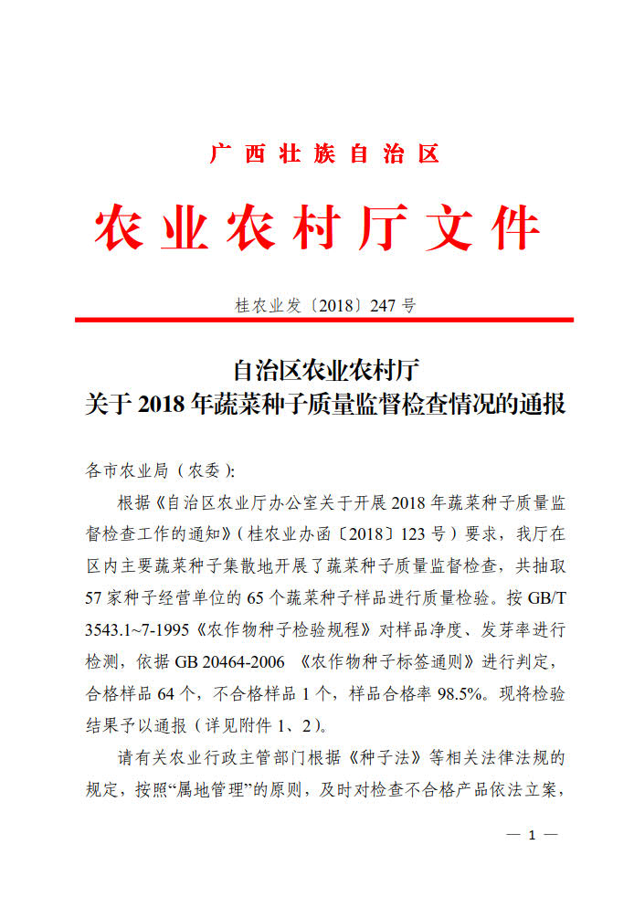 自治區(qū)農(nóng)業(yè)農(nóng)村廳關于2018年蔬菜種子質量監(jiān)督檢查情況的通報