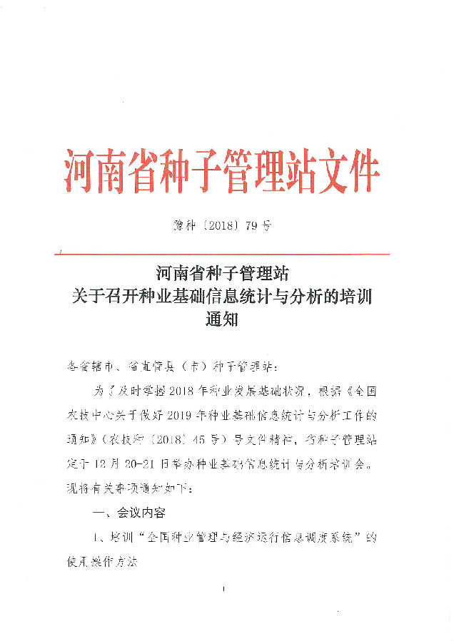 河南:召開種業(yè)基礎(chǔ)信息統(tǒng)計(jì)與分析的培訓(xùn)通知