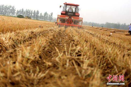 資料圖:小麥機(jī)械化收割。中新社記者 王中舉 攝