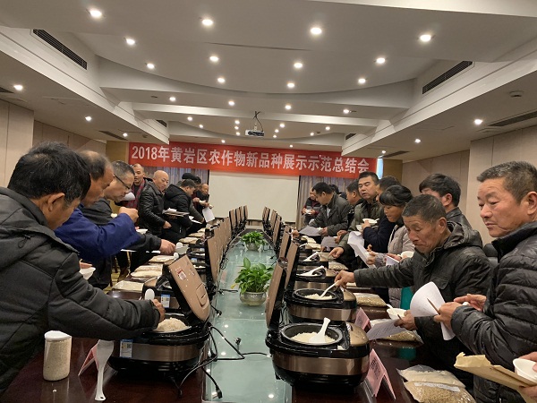 為加快我區(qū)農(nóng)作物新品種示范推廣,總結(jié)2018年度農(nóng)作物新品種展示示范工作,12月17日,黃巖區(qū)種子管理站召開了2018年農(nóng)作物新品種展示示范總結(jié)暨“好稻米”食味品鑒會。會議由區(qū)種子管理站站長陶永剛主持,全區(qū)各鄉(xiāng)鎮(zhèn)、街道辦事處農(nóng)業(yè)服務(wù)中心負(fù)責(zé)種子工作的干部及種糧大戶近50人參加會議。