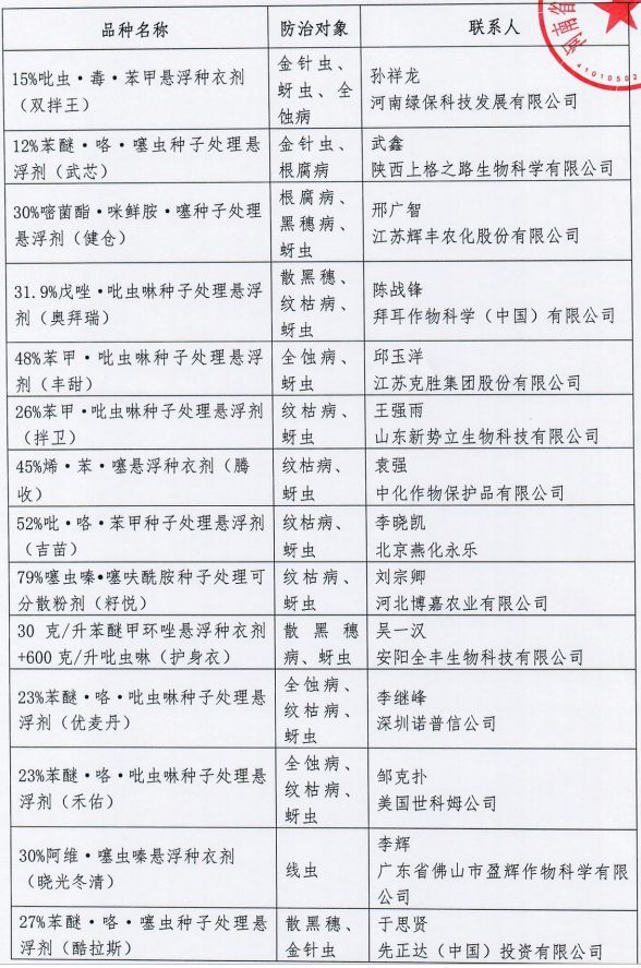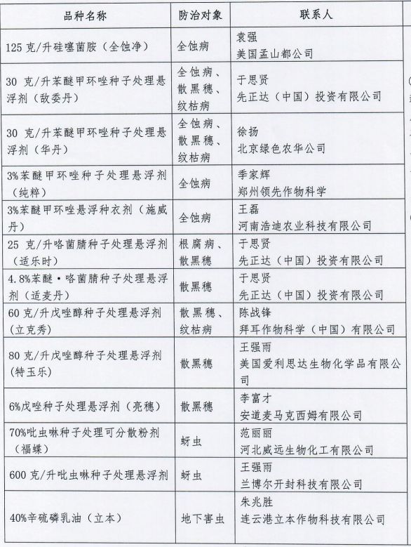 小麥種子處理劑推薦名錄》。