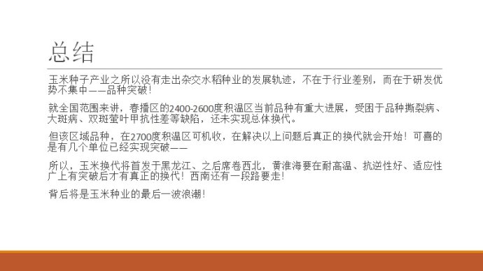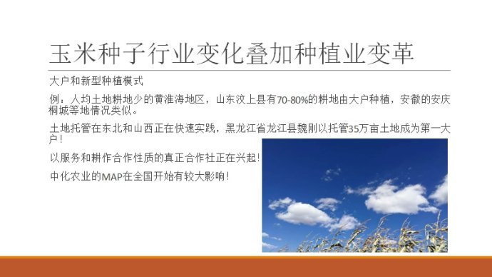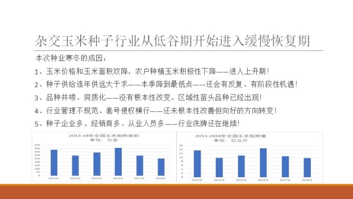 以下圖片是由國(guó)科研究院和智種網(wǎng)聯(lián)合主辦的首屆玉米產(chǎn)業(yè)大會(huì)的課件(有刪節(jié)),年底了,發(fā)出供行業(yè)人員參考,個(gè)人觀點(diǎn),不正確的請(qǐng)斧正!