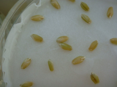 圖2.籽粒顏色是綠色的未成熟完全的籽粒在破除休眠后開始萌動(dòng)了。