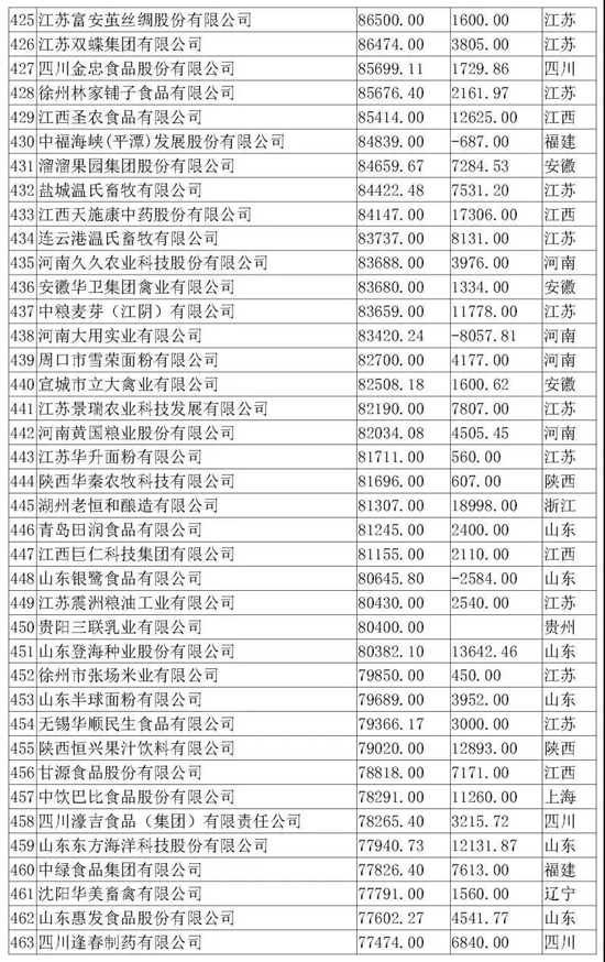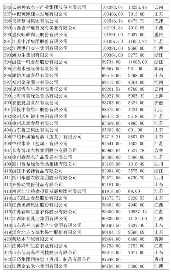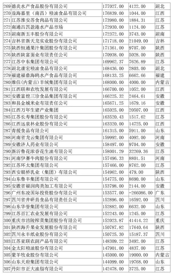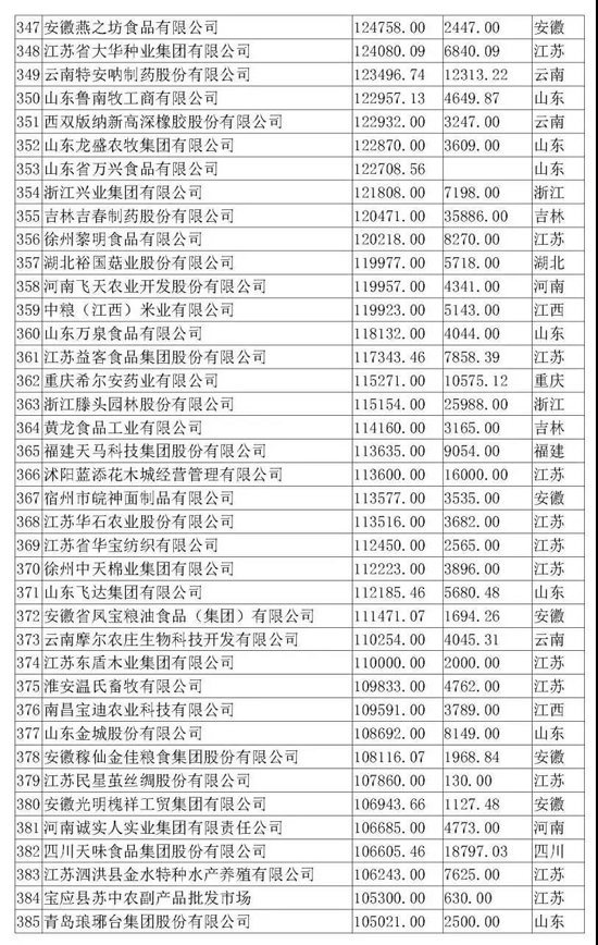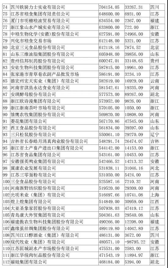 本屆農(nóng)業(yè)產(chǎn)業(yè)化龍頭企業(yè)評(píng)價(jià)指標(biāo)為營業(yè)收入,即按照2017年企業(yè)營收額進(jìn)行排名,全國31個(gè)省(市、區(qū))參加排名。本次入圍門檻為6.7億元,農(nóng)業(yè)產(chǎn)業(yè)化龍頭企業(yè)2017年?duì)I業(yè)收入達(dá)到100億元以上的企業(yè)有62家,入圍企業(yè)最多的省是江蘇省。排名前三的企業(yè)分別為廈門象嶼股份有限公司、河南萬邦國際農(nóng)產(chǎn)品物流股份有限公司、新希望集團(tuán)有限公司。