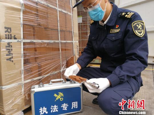 佛山海關駐順德辦事處的海關關員對花卉種植肥料椰糠進行查驗 廖順勝 攝