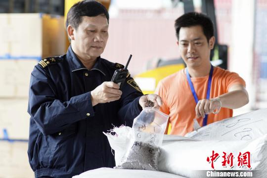 海珠海關關員對進口種子進行查驗 李煒 攝